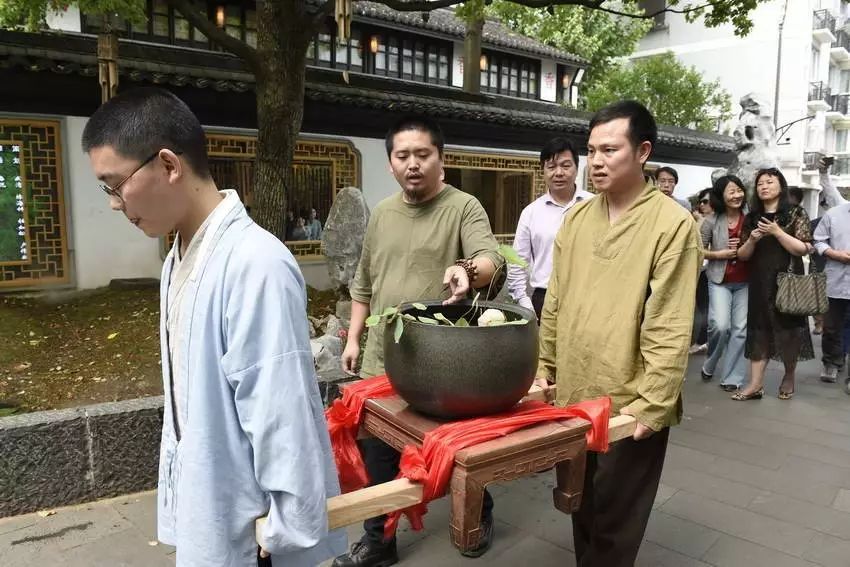 5月7日承香堂举行了隆重的迎请仪式,将此宋莲从中国美院迎请至承香堂荷花池头。