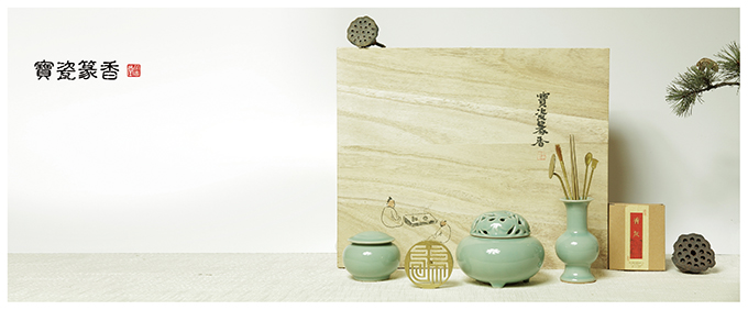 篆香即印香,古时凡文学大家都喜好篆香。篆香的精美、内容的丰富、时刻的准确,代表着篆香修为的高低。 香神苏东坡便是篆香高手,他做的篆香不仅计时准确,更是当时难得礼品。宝瓷篆香礼盒中不仅有精美的篆香 工具和上好的沉香香粉,更有龙泉青瓷(炉、瓶、盒)香器一套,让你领略中国传统香文化的魅力。