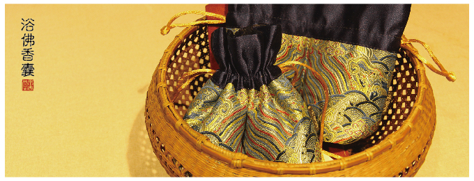 产品组成:宋锦香囊一个、浴佛香料包两包。