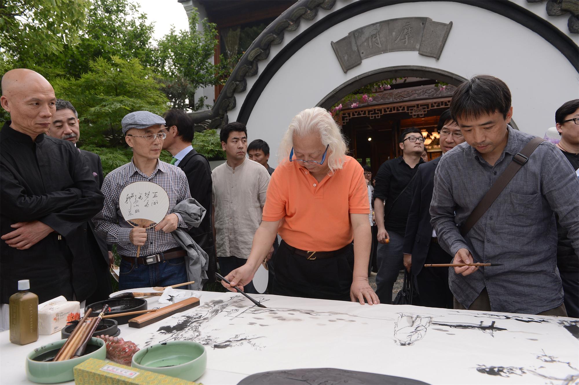 当日,雅集于西湖之上结舟三十艘一船一茶席,琴箫相伴,泛舟西湖,香道、茶道、花道尽显风雅。并邀当代书画名家许江、吴山明、王冬龄、曾宓、尉晓榕、林海钟、刘晓喻、王一飞等数十位先生于西湖之上以当下西湖之水绘製西湖之盛景,以和二百二十年前之因缘。如许江先生特为雅集所作之《西湖梦寻序》中所言:“今吾等采风水上,寻梦湖山,追踪往圣,感念再揖,湖山怡心,襟怀重塑,书之蹈之, 吟之咏之,一代风雅,千载诗心,生命当长歌,湖山即永远。”