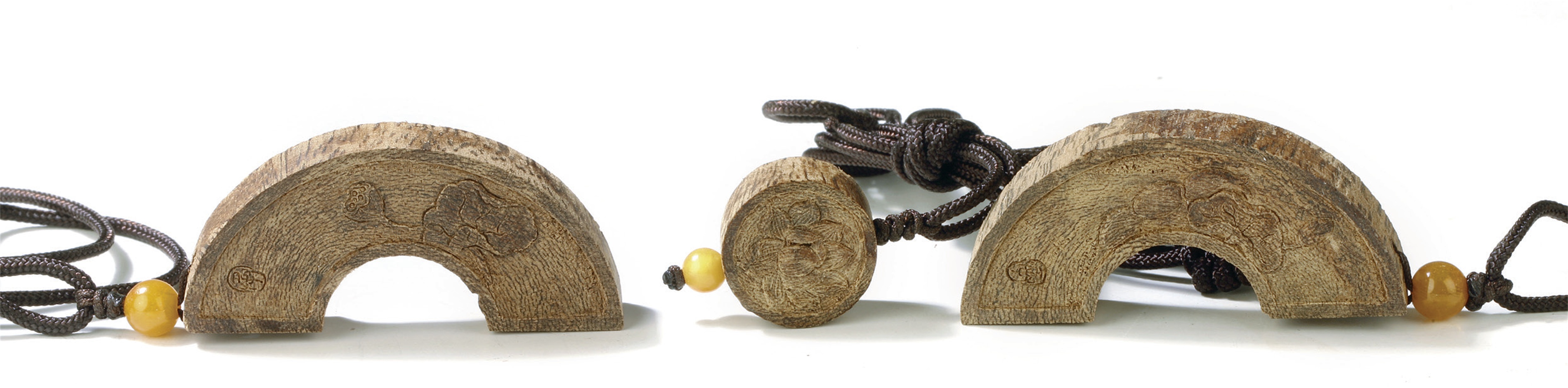 音乐剧《断桥》是承香堂倾情打造的一台杭州本土原创音乐剧,讲述了百年香铺“承香堂”的大小姐白兰与进步青年许风在断桥上发生的凄美爱情故事。“沉香同心桥”挂坠就是音乐剧中,男女主角的爱情信物。他们一生贴身携带,正如女主角所唱:“每当你闻到幽幽的沉香香味,那便是我的思念。每当你想我的时候,你就闻闻这沉香的味道。”“沉香同心桥”信物取自同一片沉香,一分为三,两座“同心桥”及一块“同心莲”,而且只有这三块沉香合在一起时,方能呈现完整木纹,具有唯一性。表面请高级雕刻师手工雕刻浅浮雕。恋人或夫妻双方各佩戴一块“同心桥”,“同心莲”挂件留给孩子佩戴。