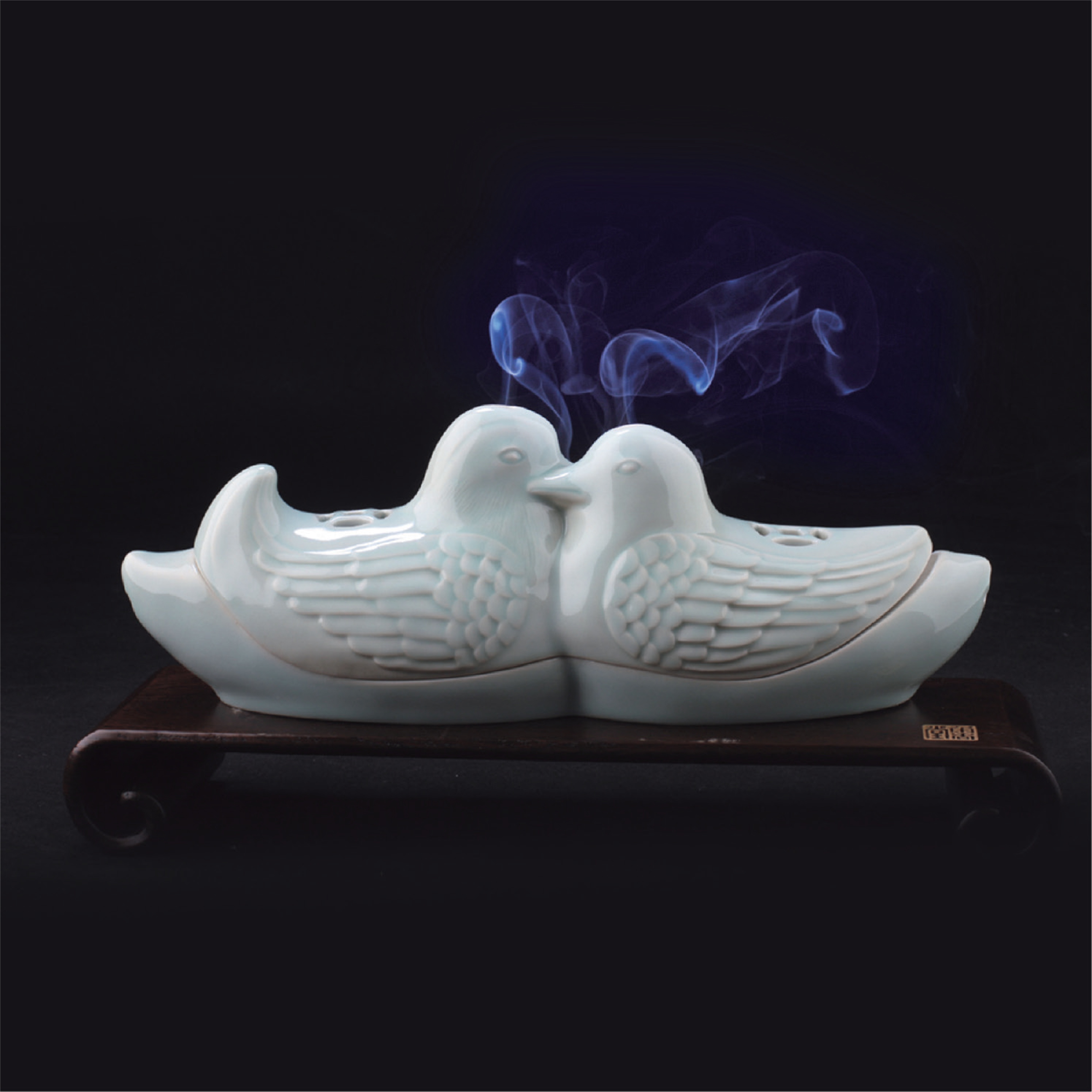若在炉中点燃沉香,鸳鸯上方会缓缓飘出一对青烟,情丝绵长,互相缭绕在一起。寓意传承香火,生生不息,是送给新人的最佳礼品。