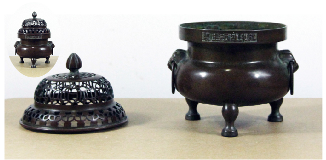 香炉,是焚香的器具,也是华人民俗、宗教、祭祀活动中必不可少的供具。历代试用的香炉包含博山炉、手炉、香斗、卧香炉、香筒(香笼)等不同形态。适用的材料多为铜、陶瓷、金银、竹木器、珐琅和玉石等。用途广泛,可熏衣、陈设、敬神供佛等。
