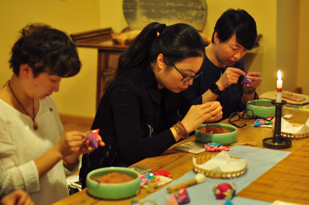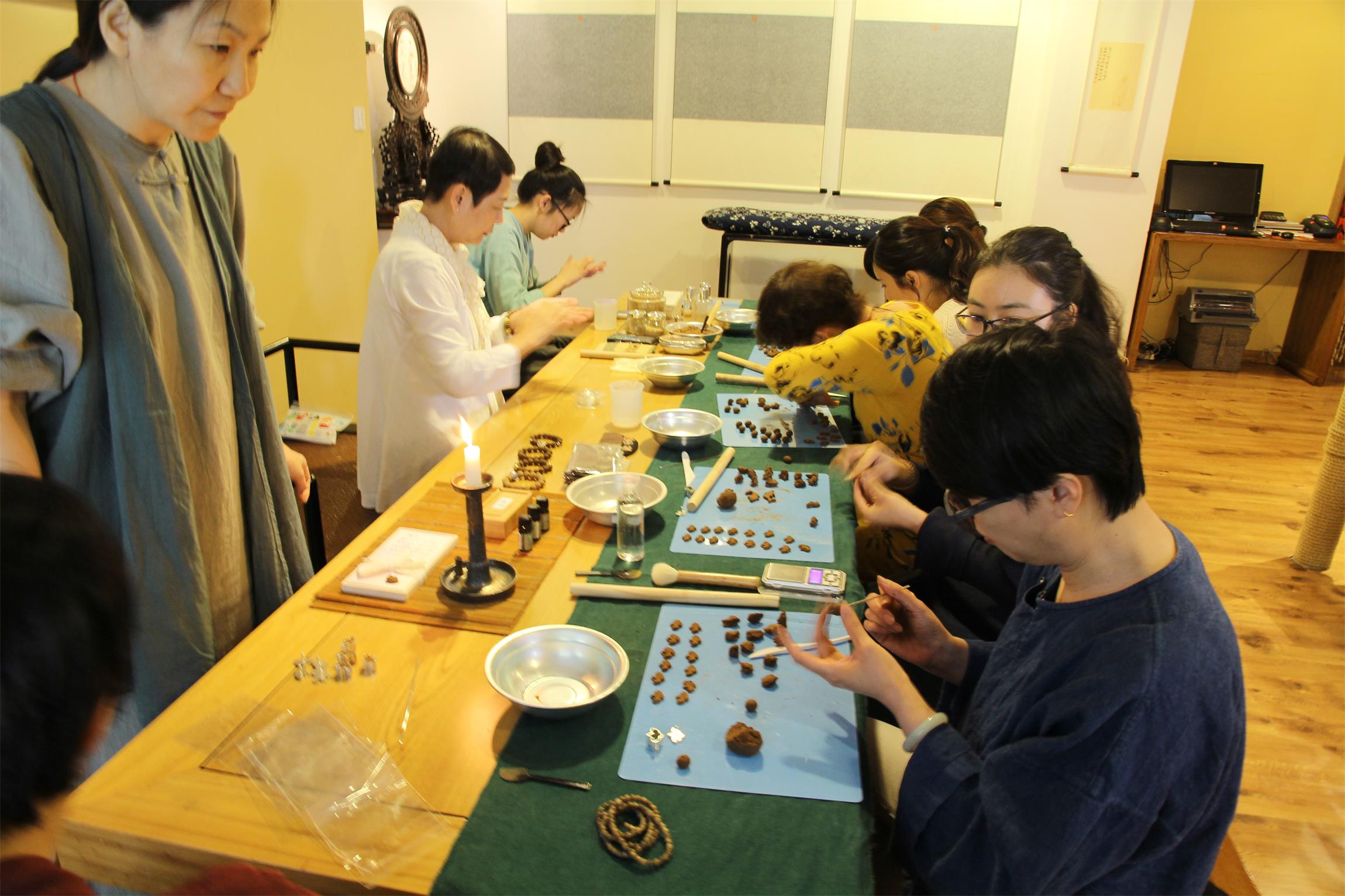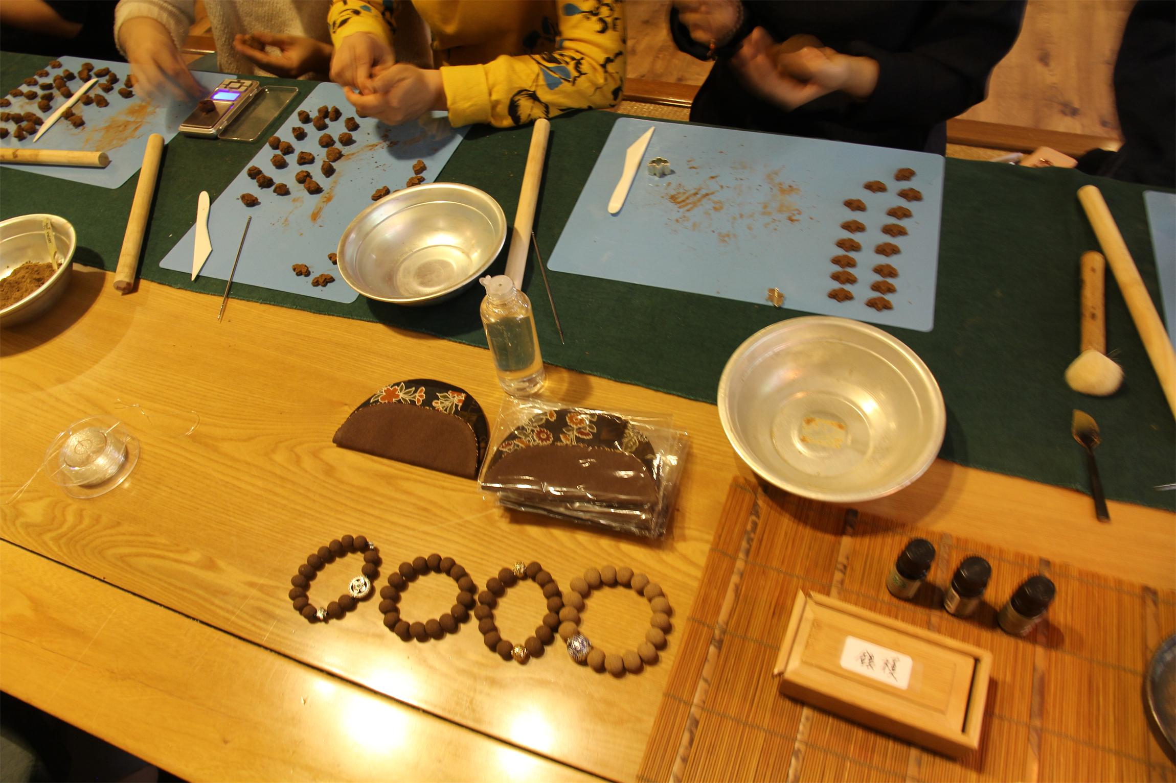 在前两天的学习中,学员们在柯燕燕老师的讲解和指导下,与各种香料来了个亲密接触,DIY制作了端午除五毒的香囊、鸢尾花造型的香饼以及香丸手串等。