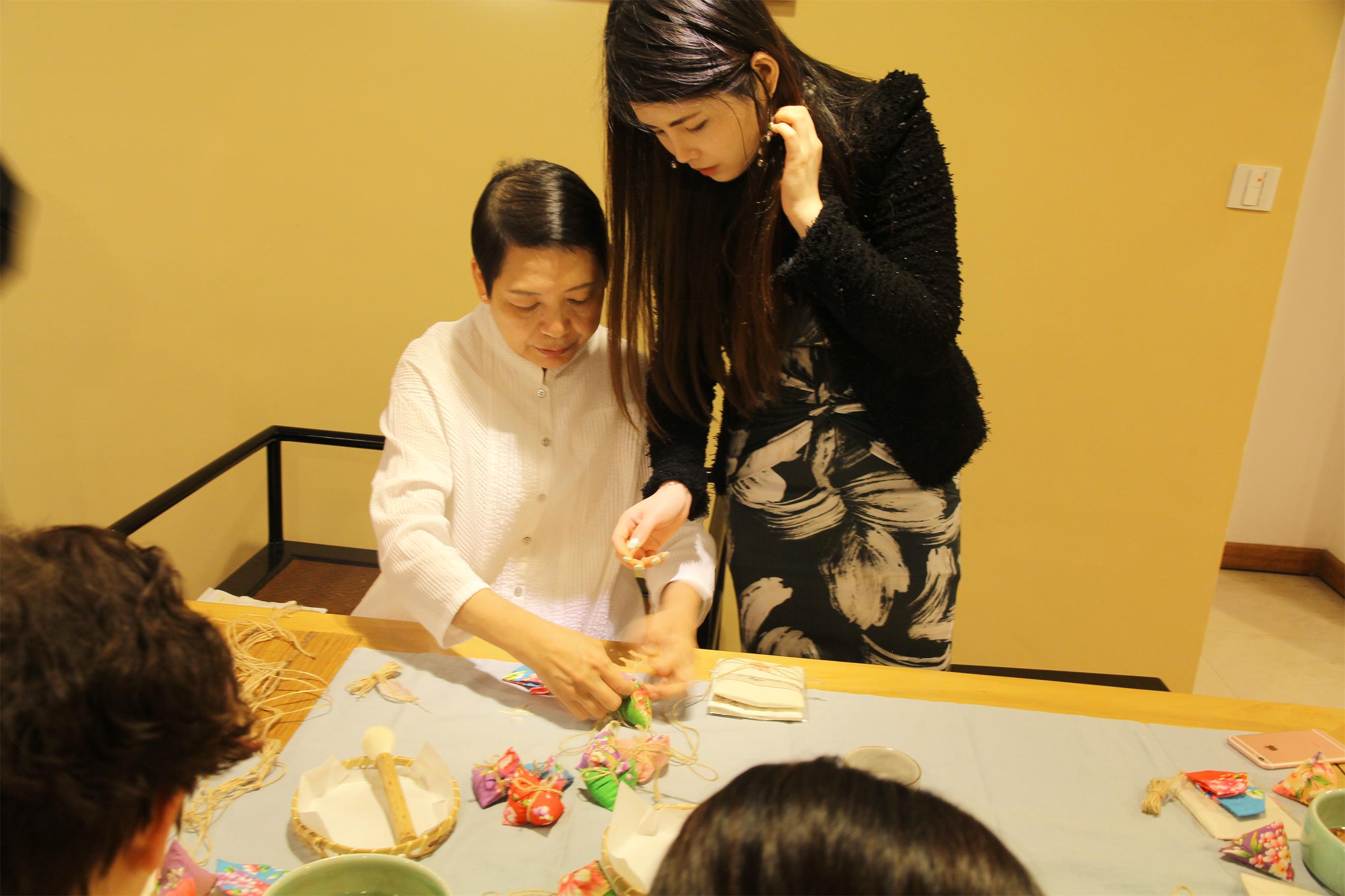 如何将香囊缝制地更加精致,如何用绳子将香囊串地更加美观呢?面对学员们的提问,柯燕燕老师是一遍遍分步骤地讲解和演示。