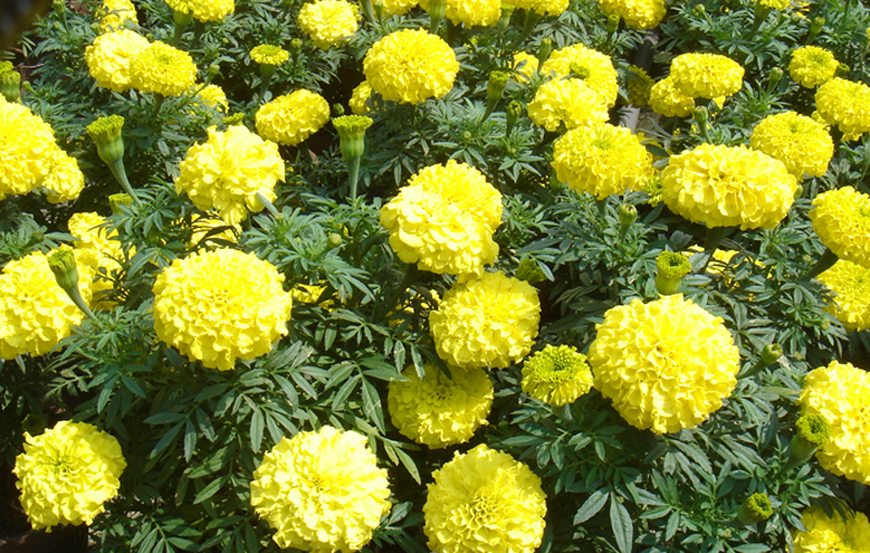 万寿菊:有一种冲鼻气味,蚊虫不敢接近它,是一种特殊的优良天然驱虫剂。
