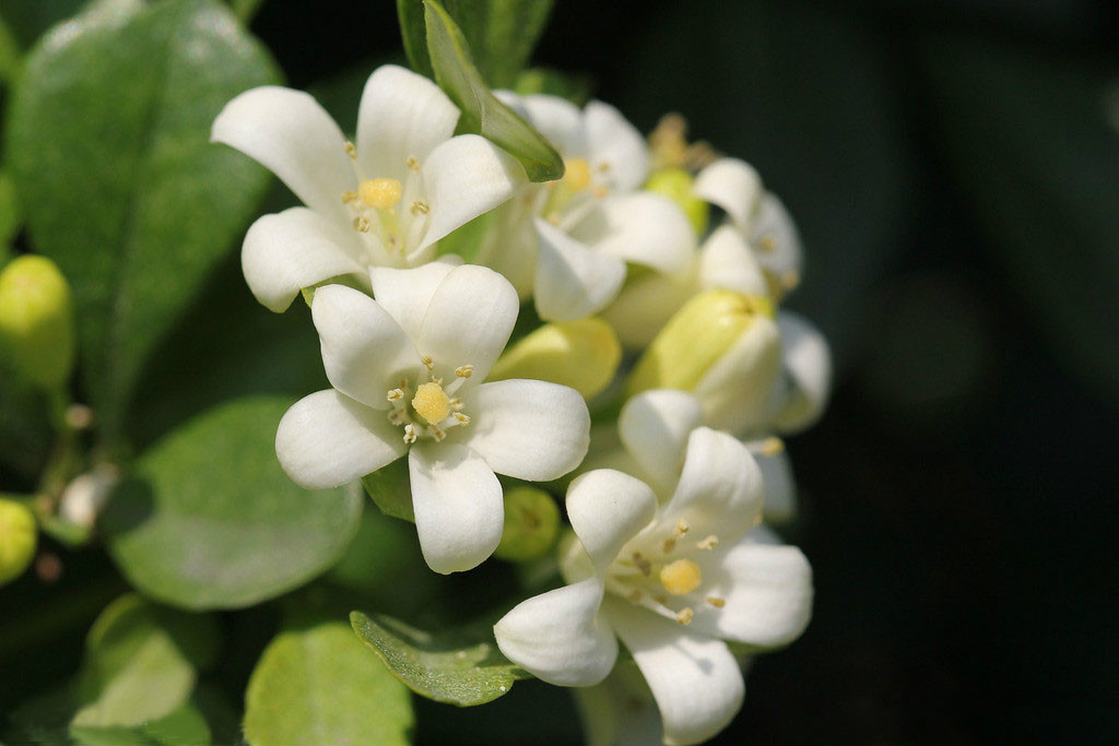 七里香:这是一种四季常绿的小灌木,外形呈伞房状,分枝多,叶小亮泽,花白繁密,开花后还能结红色浆果,为陋室增加美感。摸其叶片,会感到浓浓的甜香味,驱蚊效果很好。
