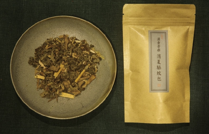 这些草药均芳香除秽,艾叶温经,紫苏、丁香、陈皮理气健胃,藿香祛暑,薄荷透疹,金银花清热解毒,诸药合用能和中固表、清热解毒、驱除蚊虫。