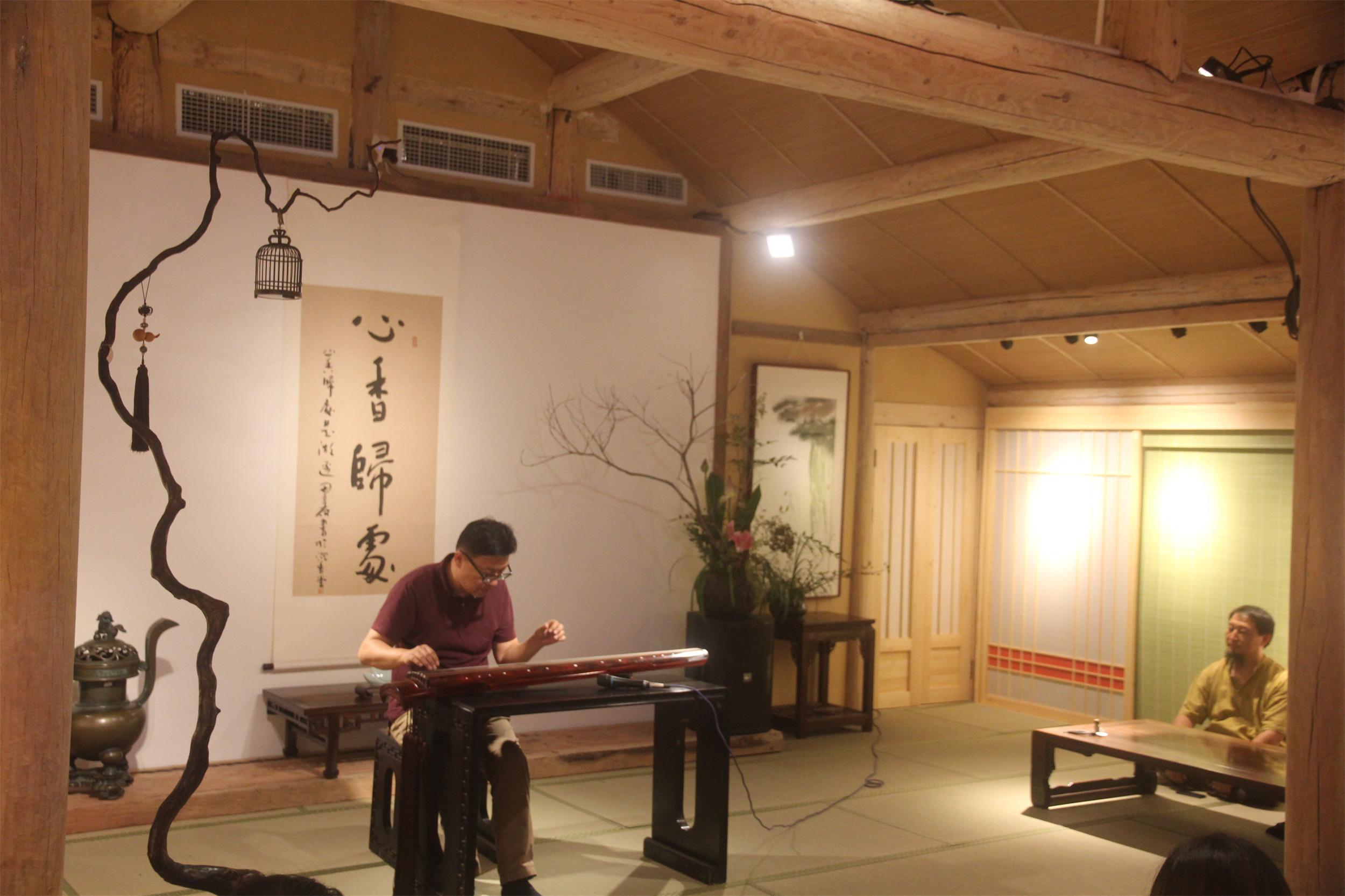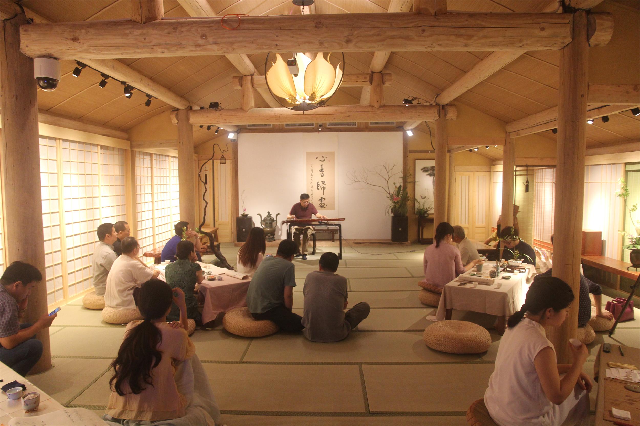 西湖琴社社长徐君跃老师为大家演奏了一曲清亮绵远,意趣高雅的古琴曲。恬淡和平的古琴之音与沉香醇厚幽长的香气融合在一起,嘉宾们听琴、闻香、品茶、吃月饼,别有一番韵味。