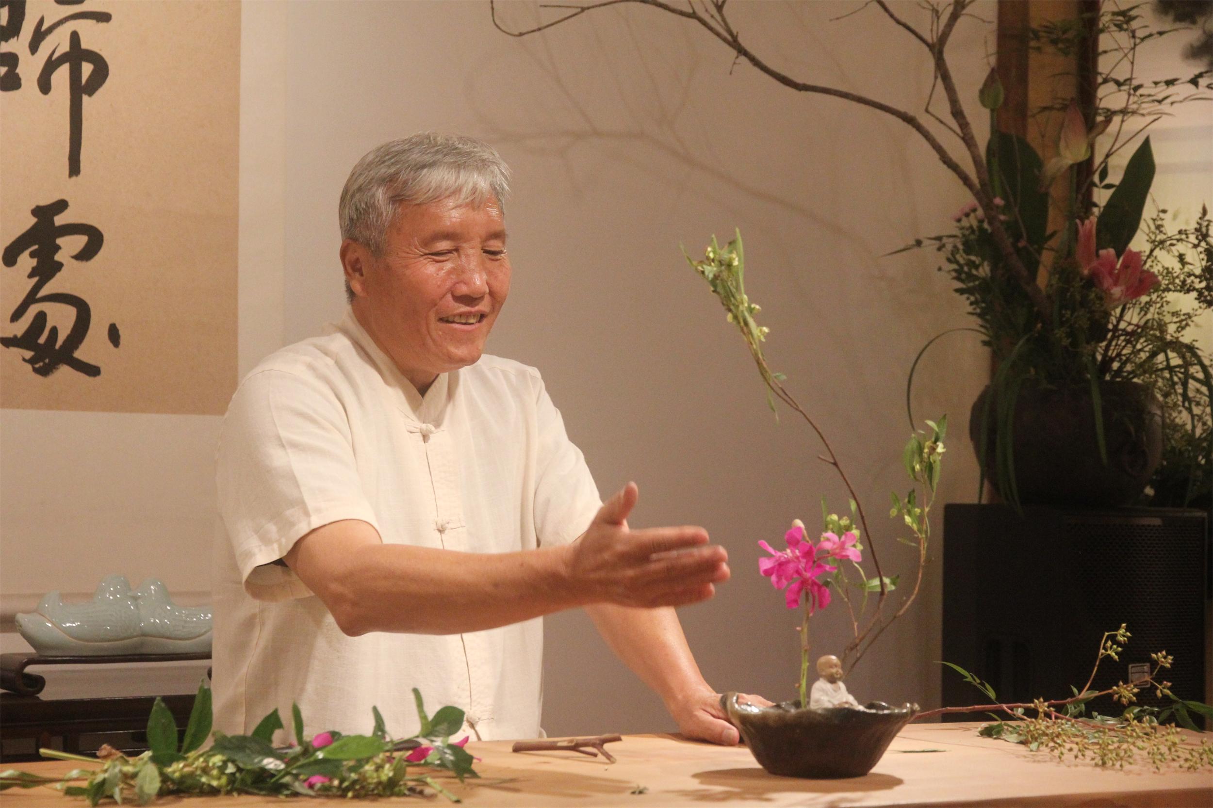从台湾远道而来的承香堂·国艺馆常驻插花教授——日本华道池坊花道资深教授简光禧教授,为大家展示了插花艺术,讲解了插花艺术的真谛。插花的表现即为心境的表现,是从有到无,再从无到有的一种境界。嘉宾们在简教授风趣的讲解中,对现代立花有了一个简单的了解。