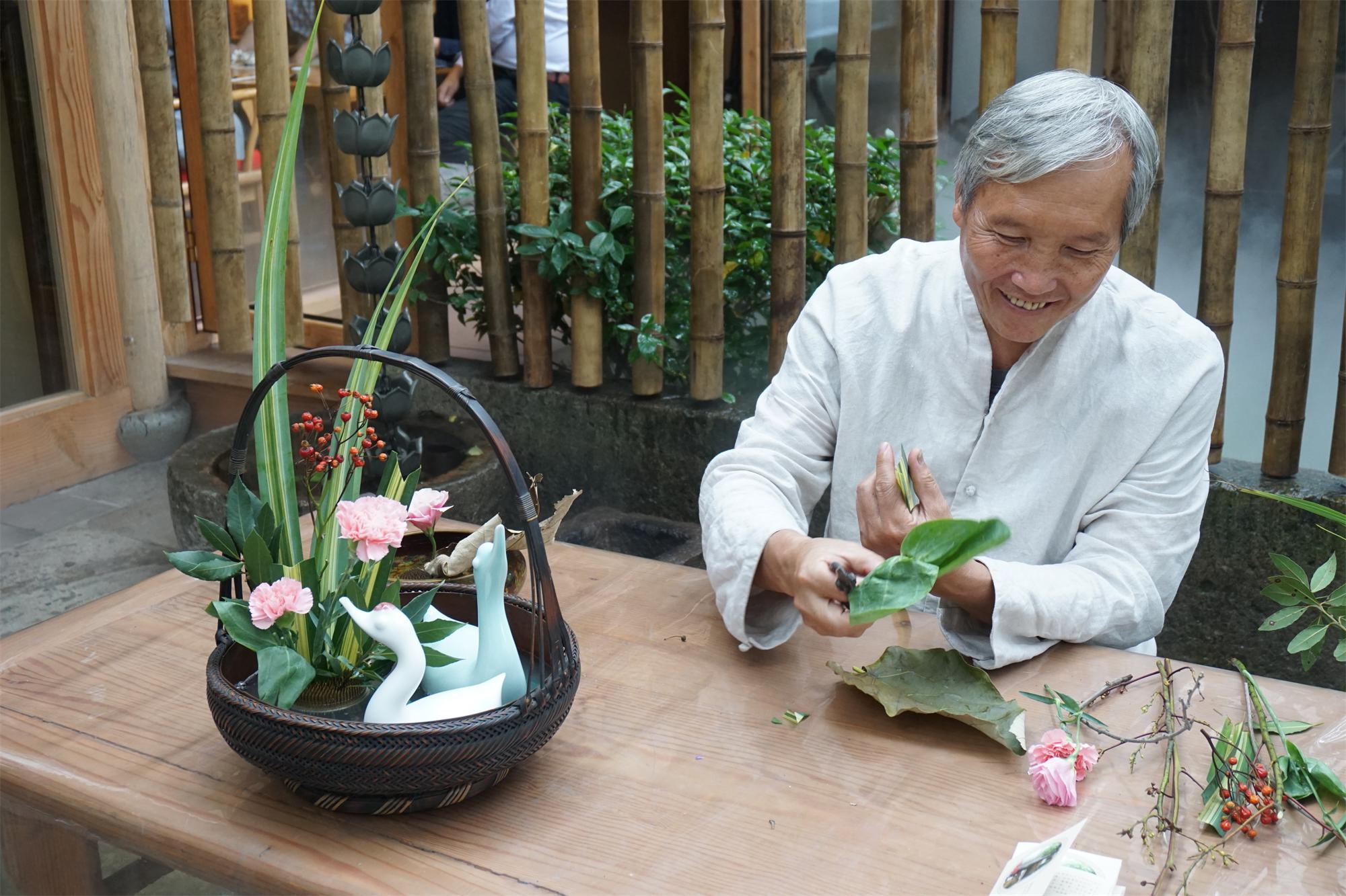 承香堂花道师简光禧教授在雅集现场为大家展现插花艺术,给大家带来了喜乐和享受。插花是一种艺术,也是一种生活。草木无言,但灵动的插花艺术将美感和对生活的喜爱流露在花朵之上。