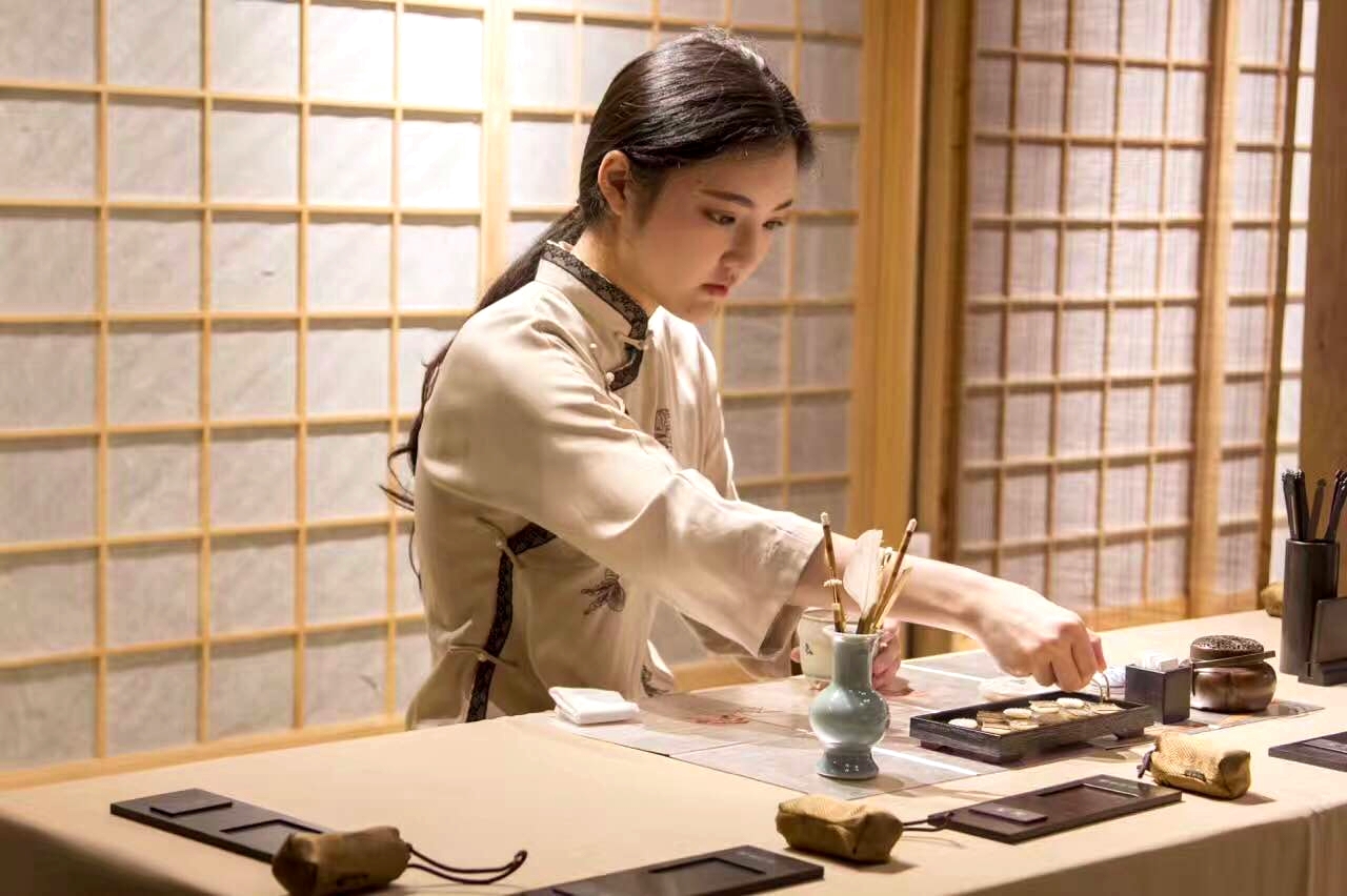 以棋楠为香材,采用隔火取香的方式,运用香道游戏——听香问易,雅玩香道,感受四款顶级棋楠(白棋楠、绿棋楠、黄棋楠和紫棋楠)的曼妙香气。嘉宾们在这里还可以品味棋楠水、品尝棋楠、品鉴棋楠线香。