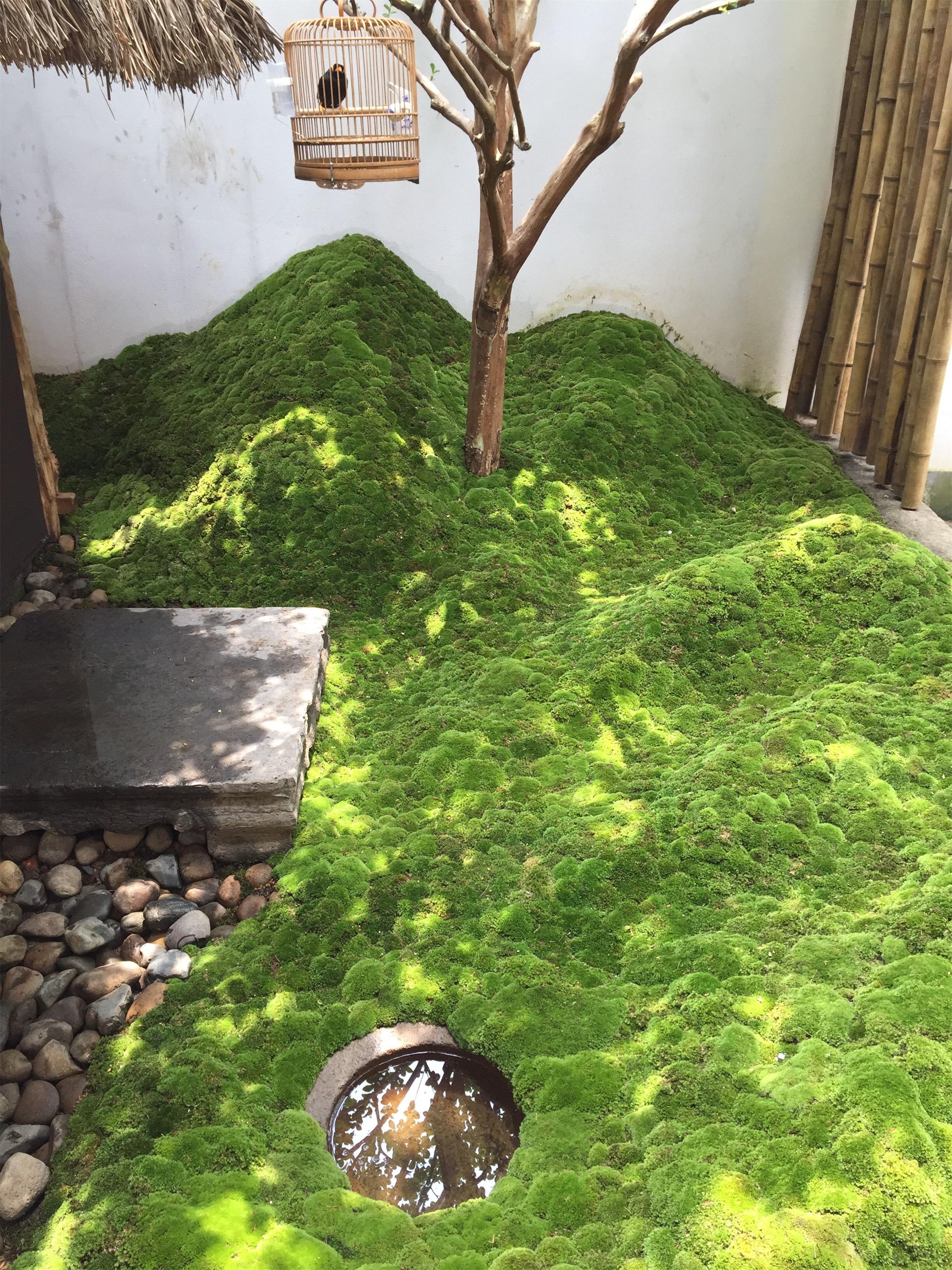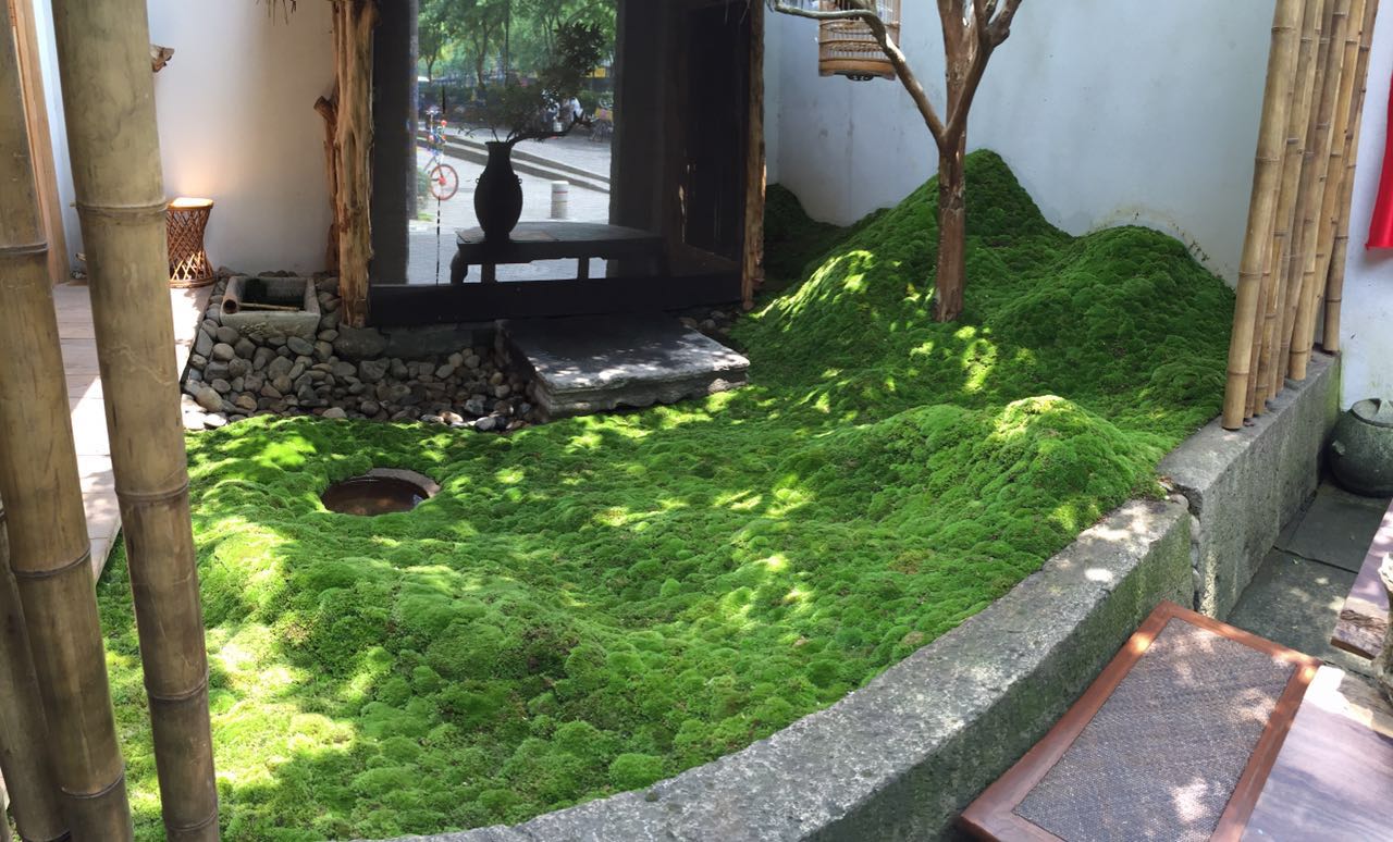 承香堂堂主卢伟业、杭州净慈寺方丈戒清大师、中国美院教授博士生导师林海钟、江南笛王杜如松和苔藓专家潘锐等当代艺术家一起雅玩之时,设计了这一方以苔藓打造而成的自然、美观且富有禅意的庭院景致。这是一种生活与自然最纯粹的联结,体现了人们内心亲近自然的愿望和渴望的山林之气。在闹市之中,拥有如此一方小小净土,实属难得!