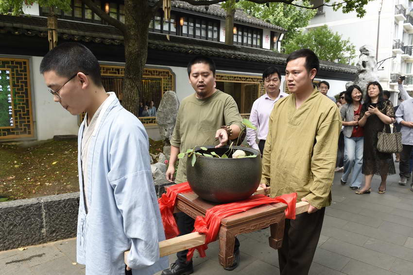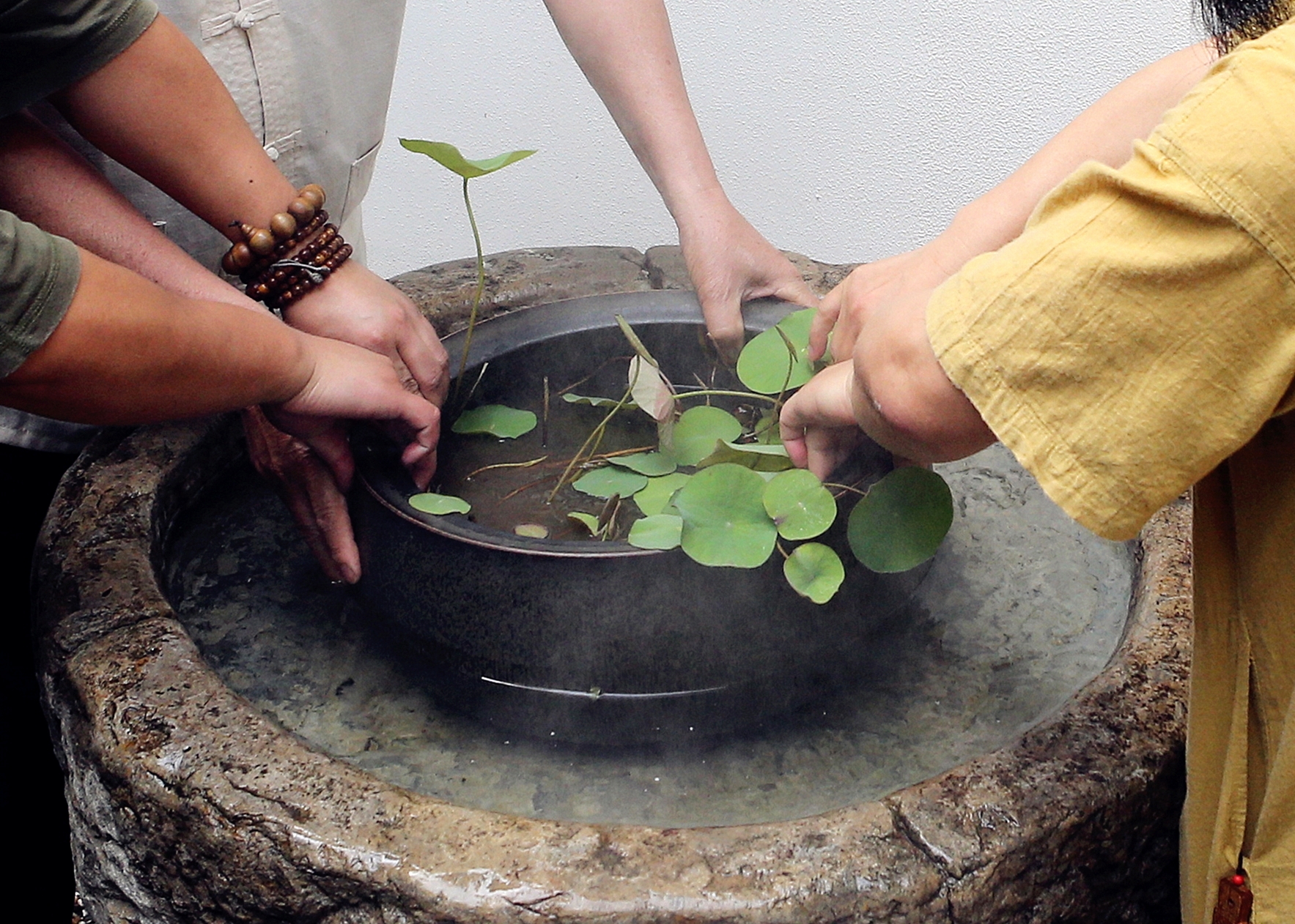 5月7日,承香堂举行了隆重的迎请仪式,将此宋莲从中国美院迎请至承香堂荷花池头,培植于“荷花池头”石碑前的宋代石莲盆中,供大家观赏,一睹千年前的莲花华彩。