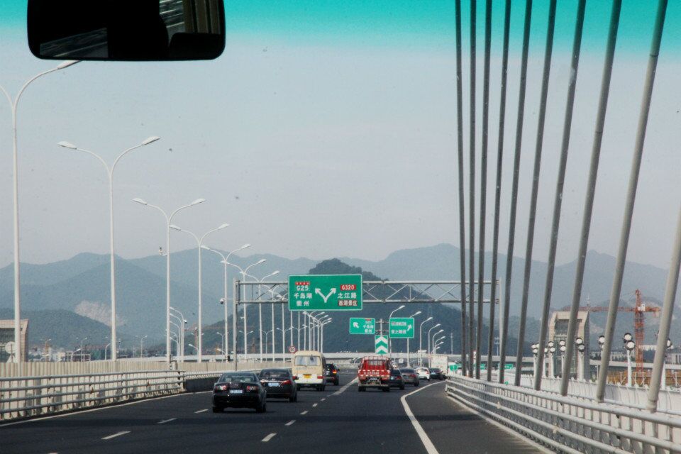 汽车在公路上飞驰的行驶,车道两旁尽是青山和宽阔的江河,远远望去形成一道壮阔的风景线。出了省道之后,汽车沿途在山道里穿梭,苍翠欲滴的绿树丛林,彰显着夏日格外的生机。
