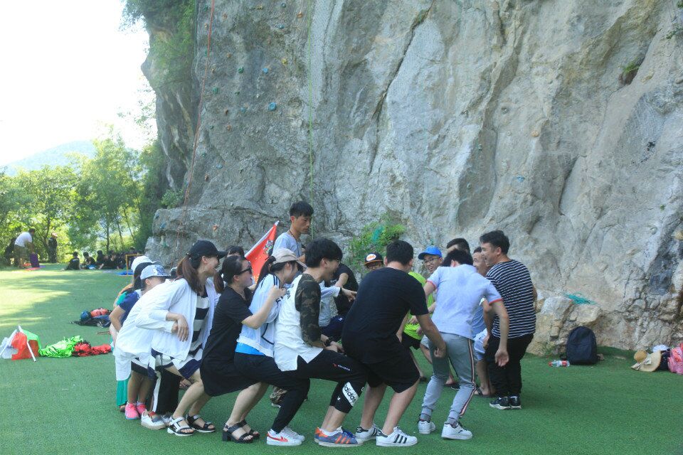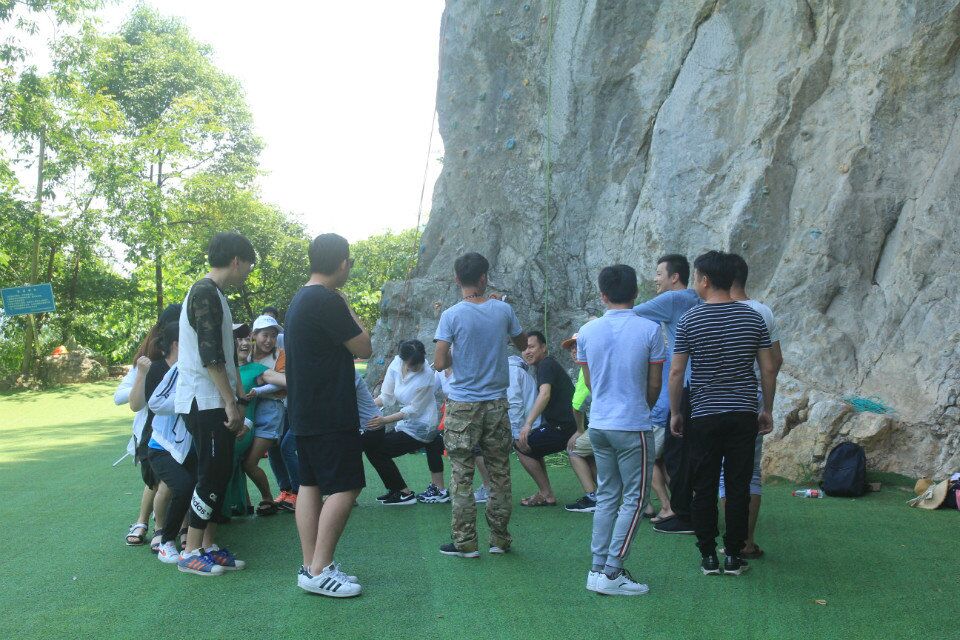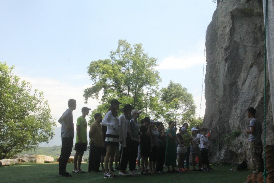 到达团建活动的集合地的时候,尽管风景确实很迷人,但是天气也特别的炎热呀~~我们并没有花太多的时间来欣赏这迷人的山色就直奔此次活动的主题了。站在前面领队的,是我们本次团建活动的教练,高大魁梧不失幽默,在整个团建活动中给我们的印象都是一种严厉,幽默,负责,细心。。。。当然,还很多词描述的哈哈。