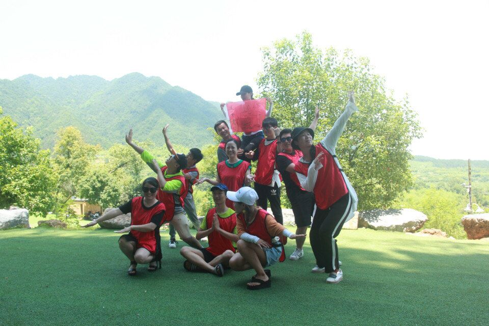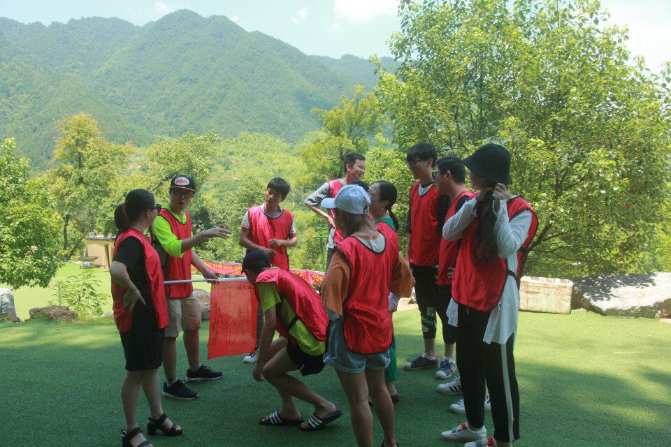 游戏结束之后我们分成红绿两队进行团队游戏合作,自创队名和队旗口号,大家发挥自己的想象和创意,寻找属于自己的归属感。