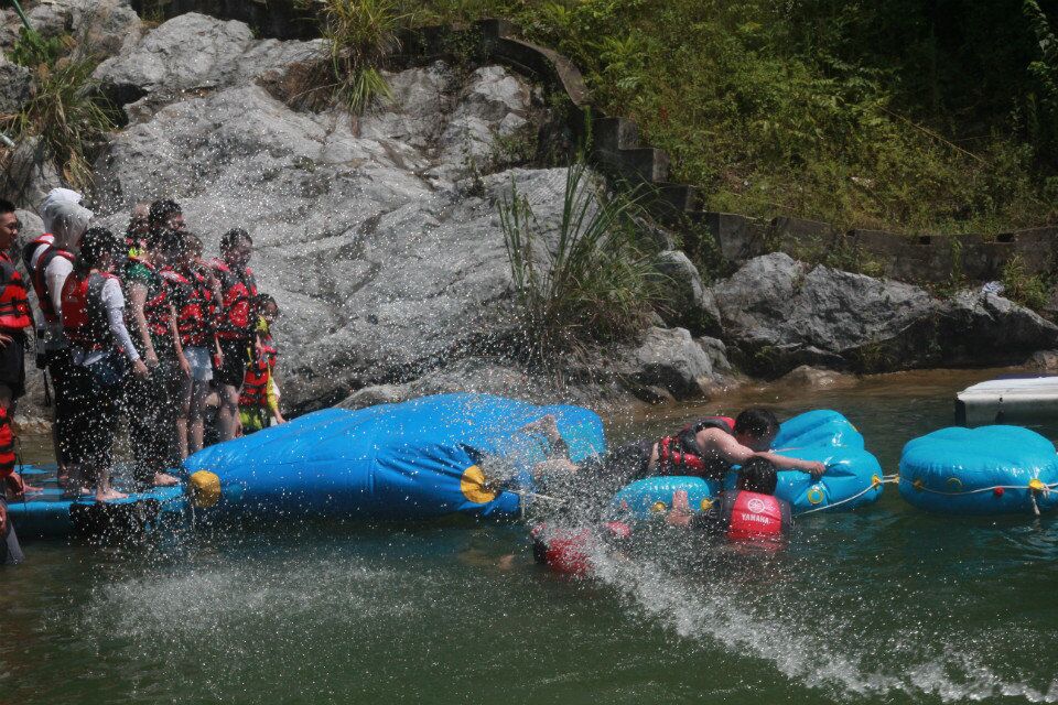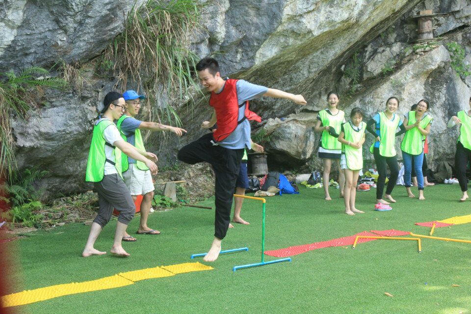大家分成两队,欢乐的玩踩脚趾板活动(踩的脚板麻麻的.....),之后我们便下山进行午餐,然后下午开始了游水项目活动。