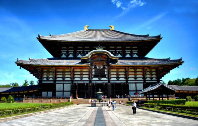 东大寺位于奈良东,是南都七大寺之一,也是世界上最大的木造建筑,历代多次修缮。中国唐代高僧鉴真和尚曾在这里设坛授戒,来到这方般禅之地,感悟唐宋建筑文化,感悟着佛教文化的传播历史。