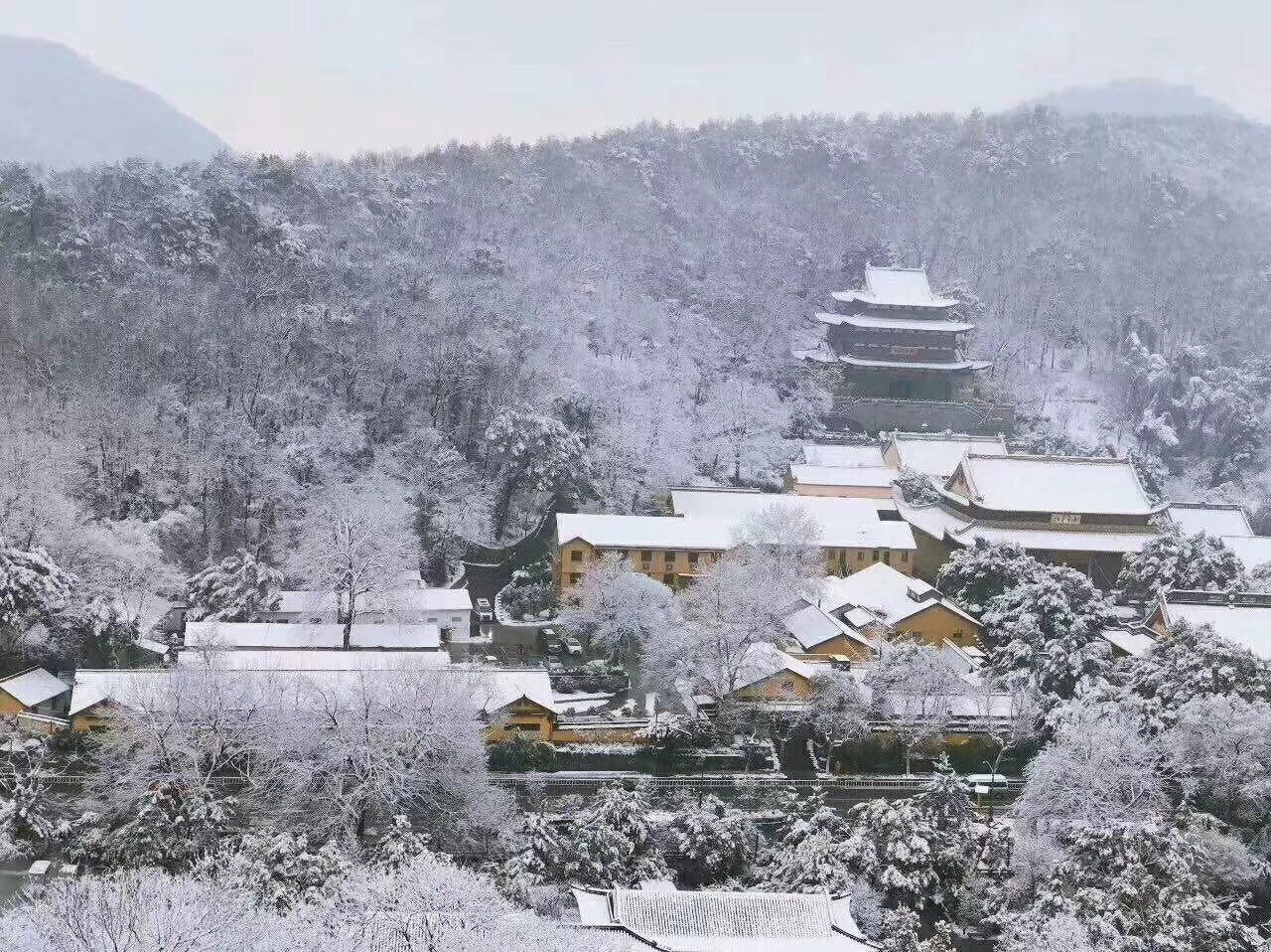 这一夜里被白雪覆盖,由远及近的峰峦,好一道江南美景,美不胜收!