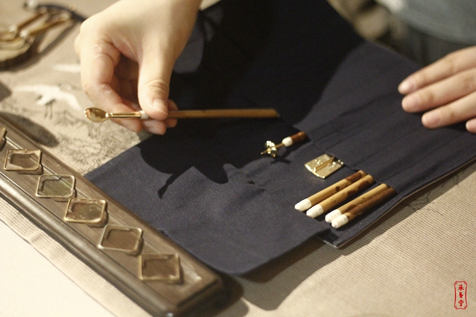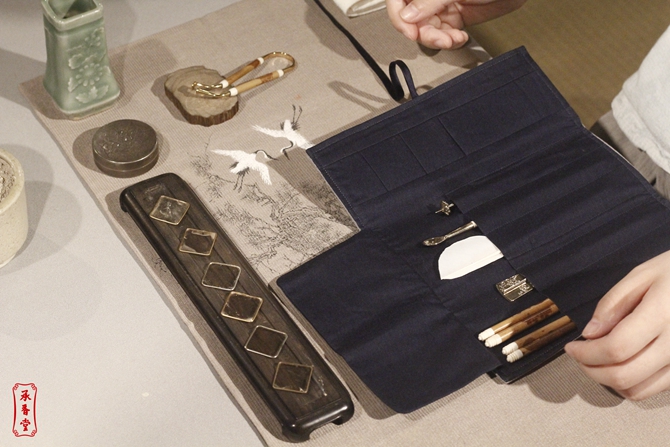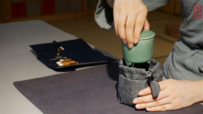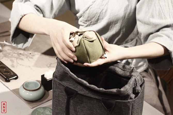 由于器具的多样且大多体积小巧,我们更需要一个能将器具“一网打尽”的工具包,以便于香具的存放和收取。
