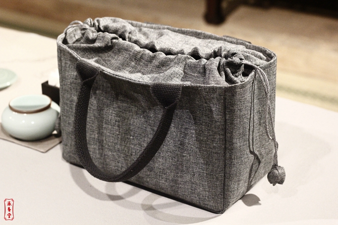 做工精细结实,材质耐磨耐脏,实用性强,抽绳设计能更好的防止物品遗落。拎手处做宽布带处理,久提也会不勒痛手掌。放置全套香具后,依旧有足够的空间,可将地敷折放在内。