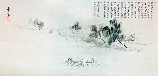 二〇一四年五月七日,承香堂於杭州西湖之上舉辦“西湖夢尋”——人文山水雅集,邀當代書畫名家於西湖湖心亭取西湖水繪製西湖勝景,以和兩百貳拾年前一七九四年五月七日日本著名畫家丹山應舉在日本用令人從杭州西湖取之水作的“西湖圖”。